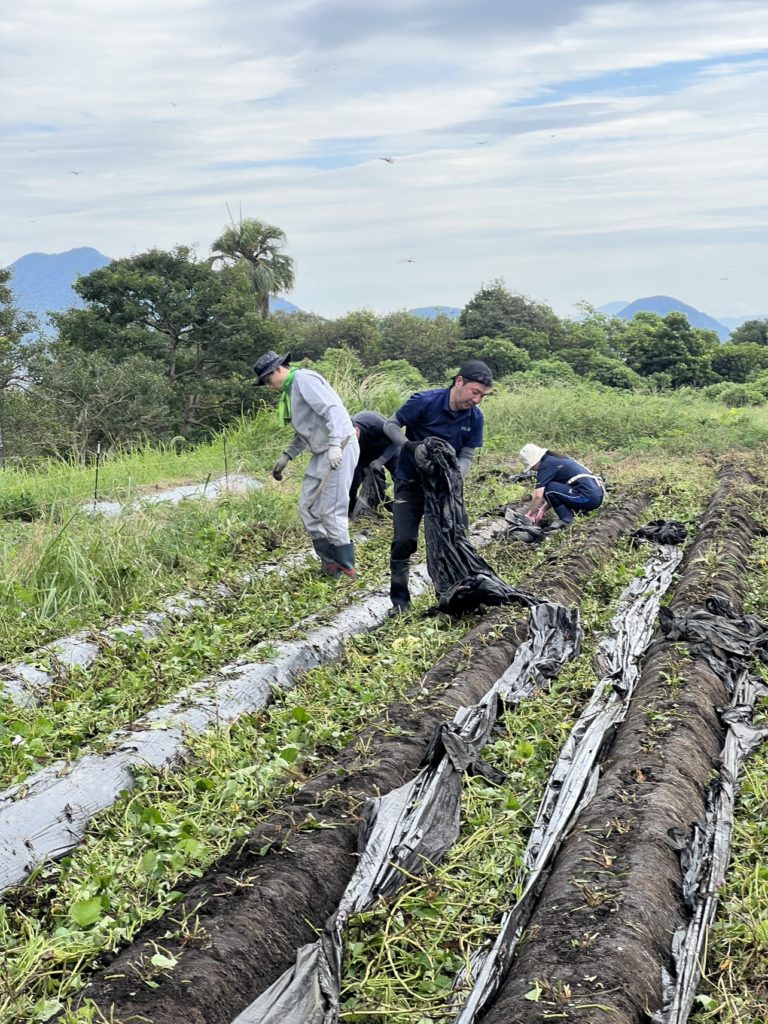その後は一枚一枚、黒いマルチのビニールをはがしていきます。